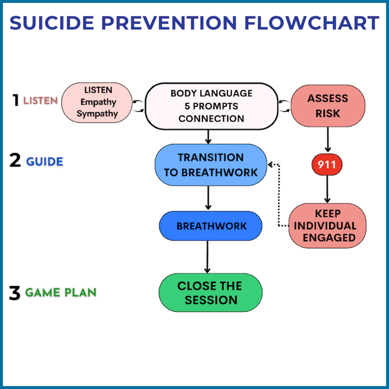 This is a compassionate human approach to suicide intervention and prevention. Many things set this program apart. To mention a few: (1) Body Language Techniques to disengage defense mechanisms to help people feel safe enough to be vulnerable to share their deepest pains, (2) Real-Time Practitioner Self-Care that is done clandestinely while you conduct your session which prevents you from absorbing any of your clients emotion, (3) 5 Prompts that quickly surface the core issue fueling your clients ideation, (4) Breathwork to release deep emotional pain from the body, and (5) The community-bond are just some of the things that set this program apart.